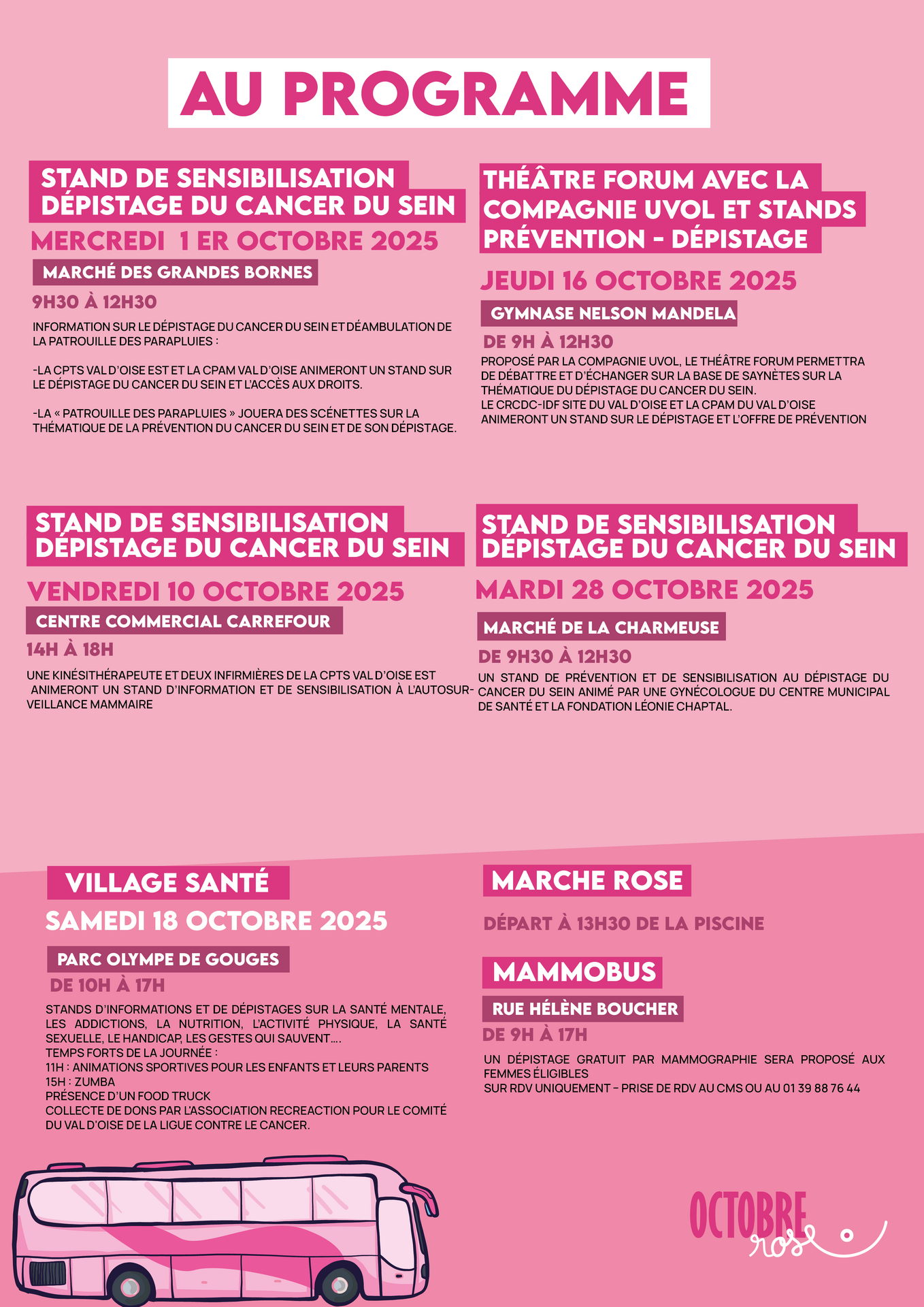 En ce mois d’octobre, Goussainville s’engage, de nouveau, pour la lutte contre le cancer du sein avec de nombreux rendez-vous dans les différents quartiers de la commune.