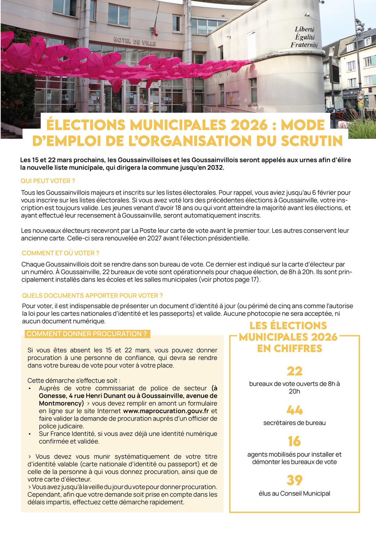 Les 15 et 22 mars, les Goussainvillois seront appelée aux urnes afin d’élire la nouvelle liste municipale, qui dirigera la commune jusqu’en 2032